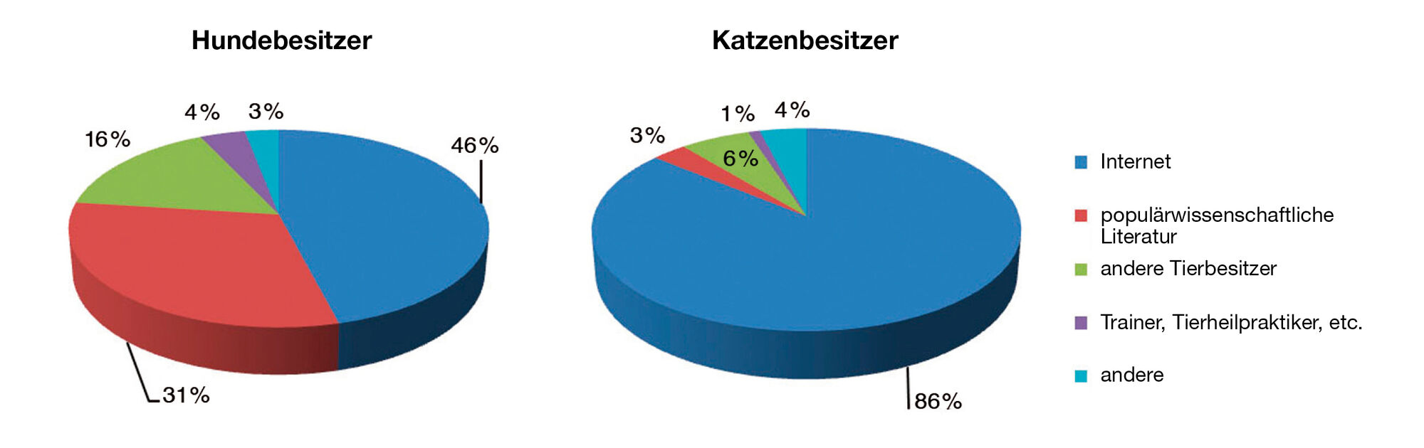 Die Informationsquellen zum Thema „BARF“ sind in erster Linie Internetseiten und Bücher (Abbildung 3) [3] [4]. Leider sind diese Quellen in der Regel von Laien geschrieben und enthalten mangelhafte oder sogar irreführende Informationen, die manchmal aber sehr „wissenschaftlich“ klingen. BARF wird häufig sehr emotional propagiert und als Allheilmittel für Krankheiten, Probleme und Verhaltensauffälligkeiten dargestellt. Besitzer, die nicht roh füttern möchten, werden unter Druck gesetzt, dass sie ihrem Tier mit kommerziellem Fertigfutter schaden würden.