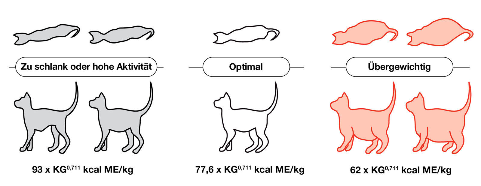 - Übergewichtige Katze = 62 x KG0,711 kcal ME/kg