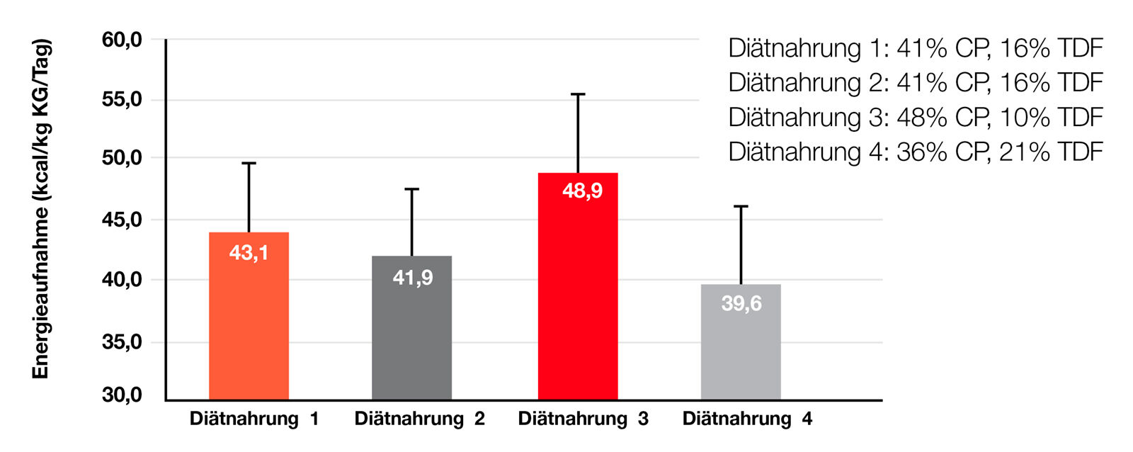Diätetische Fasern sind von essenzieller Bedeutung für die Gesundheit des Gastrointestinaltraktes [7]. Unter anderem spielen sie eine wichtige Rolle bei der Regulation der Darmpassage. Übermäßige Mengen (> 25% Fasern) unlöslicher (nicht fermentierbarer) Fasern können bei älteren Katzen jedoch Obstipation fördern. Diätetische Fasern haben zudem einen sättigungsfördernden Effekt und reduzieren die Energieaufnahme bei Katzen mit Neigung zu Übergewicht (Abbildung 5) [20]. Die auch als Präbiotika bezeichneten fermentierbaren Fasern, wie zum Beispiel Rübentrockenschnitzel, Zichorie und Fructo-Oligosaccharide, fördern eine gesunde Darmflora und bilden kurzkettige Fettsäuren, insbesondere Buttersäure, die eine wichtige Energiequelle für die Kolonozyten darstellt. Eine neuere Studie kommt zu dem Ergebnis, dass eine Kombination aus präbiotischen Fasern, Linolsäure, EPA/DHA und Antioxidanzien die Langlebigkeit bei alternden Katzen fördern kann, indem sie zum Erhalt des Körpergewichts, der fettfreien Körpermasse, der Anzahl roter Blutkörperchen und Hautdicke beiträgt [6]. Der Fasergehalt von Futtermitteln variiert erheblich in Abhängigkeit von der Zielenergiedichte des Produktes (15-90 g/1000 kcal ME).